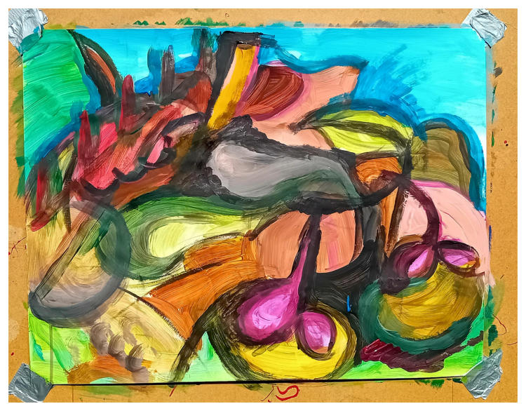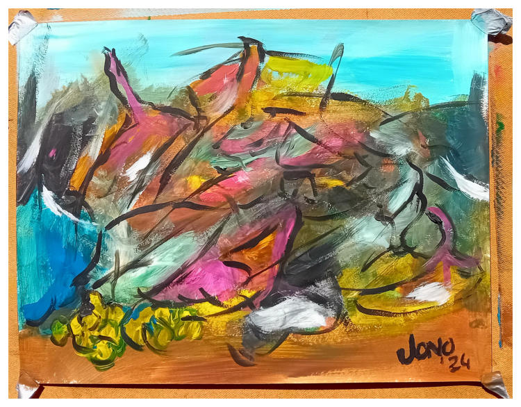 aan de ezel op het zelfde doek. Dit is 3 x gerepeteerd en dit